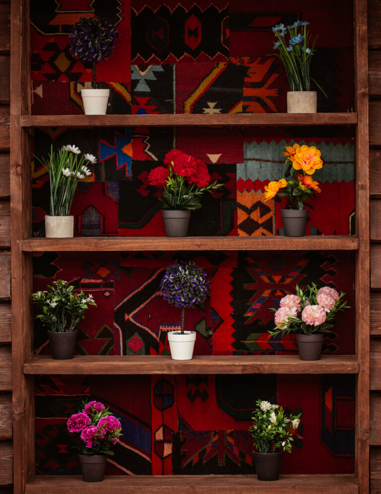 Estantería artesanal de madera recuperada, con detalles tallados a mano que la convierten en una pieza única. Perfecta para almacenar libros, plantas o recuerdos, aportando un toque rústico y elegante a tu hogar.